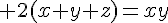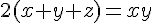 La première équation s'écrit : (x+y)²=z²+2xy=z²+4(x+y+z)