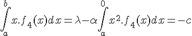 Mais je pense avoir mieux compris ta proposition je vais voir si j'arrive à la faire en opérant un changement de variable du type X=x-c. Mais alors int(X.f(X),a-c,b-c) sera diffétente de 0. Donc je ne sais pas si le raisonnement est le même.