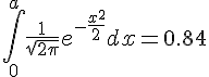 il faut que je détermine a tel que P(0<X<a)= 0.84 sacahant que X suit une loi normale centrée reduite.