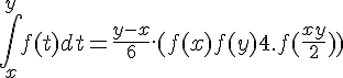 integrale de f(t) entre x et y = (y-x)/6 * (f(x)+f(y)+4*f((x+y)/2))