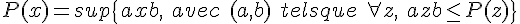 Montrer que P(integrale de a à b f(x)*g(x))<=integrale de a à b de P(g(x))*f(x).