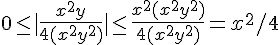 Je dois montrer la continuité de la fonction f(x,y)=(x2 * y)/4(x2+y2)