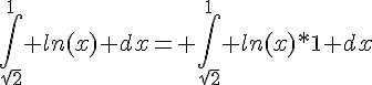 En effet je dois calculer ∫Ln(x√2) entre √2 et 1. On m'indique d'utiliser une intégration par partie mais c'est là que je bloque.