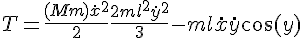 j'ai l'equation: T=(M+m)x.2/2+2ml2y./3-mlx.y.cos(y)