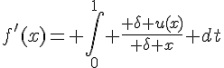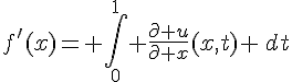 -si f(x)=l'integrale de 0 a 1 de (e^(xt))/(1+t) a quoi serait egale f'(x)?