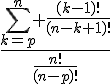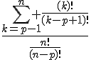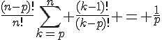 J'ai trouvé: [somme de k=2 à n de k!/(k*(k-p)!) ] / (n!/(n-p)!)