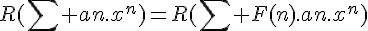 ? Ca ressemble pas a une derivee ? Et le machin dont ca derive ne te rappelles pas quelque chose de connu ? Reste a faire les choses proprement, ce qui se passe en 0, les rayons de convergence de chaque serie intermediaires...