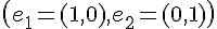 Cependant, tout ceci est une structure algébrique très abstraite. Il me manque quelque chose pour "l'immerger dans le réel", autrement dit représenter cette construction algébrique telle qu'elle doit coller à la géométrie. Par exemple, restreignons nous au plan affine, je lui associe(avec la structure euclidienne canonique) : la base canonique