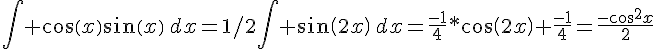 Int(cos(x)*sin(x),x). J'ai beau essayé mais je ne trouve aps la solution.