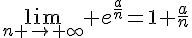 Te fatigue pas, note exp(ln((1 + x/n)^n))=exp(n ln(1+x/n)) et fais un développement limité à l'ordre 1 de ln(1+x/n) en 0, puisque quand n tend vers l'infini, à x fixé, x/n tend vers 0.