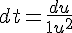 Mais à partir d'ici, je n'arrive pas à simplifier l'expression de l'intégrale en t, pour aboutir à une forme dans laquelle il ne resterait que des tangentes, ainsi que l'expression de la variable.