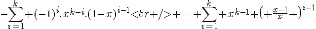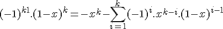Salut Calcule (-1)k+1.(1-x)k + xk = xk - [(1-x).(-1) ] k avec ta formule et tu verras ce qu'il en sort Bye