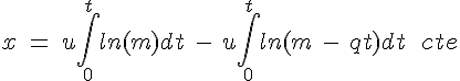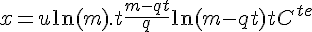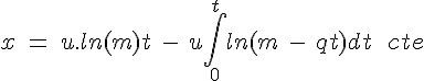 Je cherche à calculer l'équation de la trajectoire d'une arche interstellaire de masse initiale m qui se propulse à poussée cte en éjectant un débit massique q à la vitesse d'éjection u.