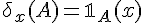 La fonction indicatrice de A (un ensemble) est déf par : 1A (x) = 0 si x n'est pas dans A et 1A (x) = 1 si x est dans A EDIT : relation avec le symbole de Kronecker :