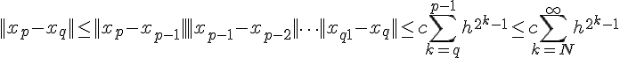 On me demande de montrer que la suiteest une suite de Cauchy, et d'en déduire qu'elle converge alors vers