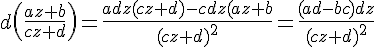 Puisque les coefficients sont réels R->R et les deux demi-plans par connexité (dans le compactifié)sont chacun envoyé sur un des deux. Puisque i est envoyé sur (ai+b)(ci+d)=(bd+ac+i(ad-bc))/(c²+d²) le demi-plan est bien préservé.