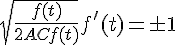 f(t)² x f ''(t) = -A (il s'agit d'une dérivée seconde, et c'est bien là le problème)