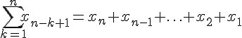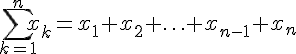 moi dans cette formule, si je prends par exemple k=1 et n=10, je comprends que dans 1+2+3+4+5+6+7+8+9+10 ( X1 + X2 + ... + X10 ) ,