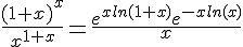 ((1+x)^x)/(x^(1+x)) au voisinage de zero ! comme la limite n'est pas fini alors c un developpement limité genralisé qu'on nous demande !