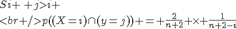 En fait je n'y arrive pas puisque moi je trouve la loi conjointe a partir de la loi de X et Y et non l'inverse.Un urne contient 2 boules blanches et n boules noires. On vide l'urne en tirant les boules une a une sans remise.