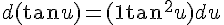 Envoyé par silvio78 Bonsoir , à tous voilà mon problème : je voudrais savori si la dérivé de tan (u)=du (1+tan2u) ou 1+ du tan2u. Merci d'éclaircir ma lanterne , cela pourrait m'aider pour mes examens La dérivée de est . La différentielle de est .