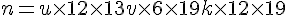 n = u*12*13 + v*6*19 + k*12*19 avec u,v,k appartenant à Z.