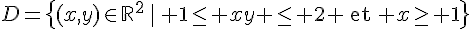 D = {(x,y)/(1) inf.ou = à xy inf.ou = à 2 et x sup.ou = à 1