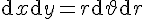 ou u et v. Attention d'exprimer correctement le dxdy: il doit être obtenu en prenant la déterminant de la matrice Jacobienne de la transformation de coordonnées (par exemple, pour les coordonnées polaires: