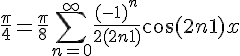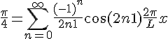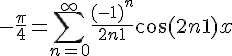 Il serait sain que tu puisses poser correctement la série dont tu te proposes de démontrer qu'elle vaut π/4. Car la formule dans le post #8 est toujours fausse.