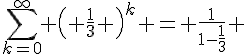 D'ou: (1/6)*SOM[0-infini] (1/3)^n = (1/6)(1/(1-(1/3)) = 1/4