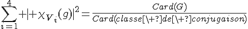 Bon là si les caractères sont réels, pas de problème la deuxieme relation donne le triplet {1,1,2} et la première montre que le 2 est en fait le caractère de. Mon problème, c'est que je ne vois pas pourquoi ce serait des nombres réels.