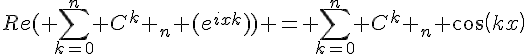 Il est indiqué qu'on peut s'aider de cos(k*x) = Re(exp(i*k*x))
