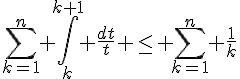 J'ai démontré que pour k, un entier naturel non nul, et pour t décrivant le segment [k , k+1] on a: