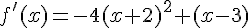 donc f'(x)=-4(x+2)^2 (x-3)