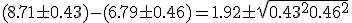 (8.71 ± 0.43) - (6.79 ± 0.46) = 1.92 ± ?