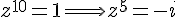 On a alors un nombre complexe tel que z^n=1 avec n=10 donc il y a 10 racine qui sont les e^^(2ikπ/10) avec k = (0;1;2;...;9)