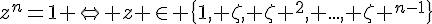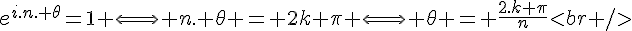 "L'équationadmet exactement n solutions dans C, qui sont toutes de module 1 et que l'on apelle racines n ièmes de l'unité.