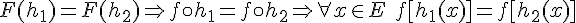 1) Montrer que si f est injective, alors F l'est aussi (indication: on pourra raisonner par l'absurde et utiliser que si deux fonctions h1 et h2 de E^X sont distinctes, alors il existe x appartenant à X tel que h1(x) est différent de h2(x).