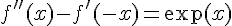 si je derive on a f''(x)+f'(-x)=exp(x) mais je n'ai pas y" +y' =exp (x) et quand je remplace par f'(-x) ou f"(x) je tombe sur exp x =exp x...ce qui me semble logique mais qui me mène a rien...