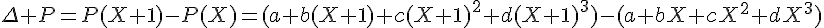 et jai deltaP=P(X+1)-P(X) ds Rn[X] mais j'arrive pas a déterminer deltaP ds R3[X] avec les coefficients a,b,c,d. merci beaucoup