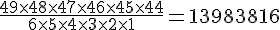 Ensuite il faut diviser par le nombre de combinaisons possibles entre le tirage que tu obtiens. Exemple : 49 numéros au loto donc 49 possibilités pour le 1er, 48 pour le second, etc..., 44 pour le 6ème.