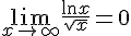 Pr le moment j'ai posé u (x) = racine de x et aprés j'ai résolu par composition lim ln x / u(x) =0 car u(x) tend vers plus l'infini et aprés j'ai fait par la croissance comparée...
