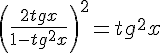 Pour l'autre équation, j'ai oublié d'élever le tg 2x au carré.