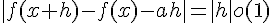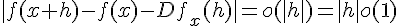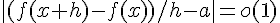 D'après la définition de la différentiabilté , donc , donc en divisant par |h| pour h différent de 0, on trouve c'est à dire tend vers 0 avec h, donc est la dérivée de f en x.