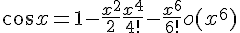cos(x) = 1-x²/2+x^4/4!-x^6/6!+.... ou cos(x) ~ 1-x²/2 en 0