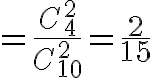 La proba que ce soit un homme en en prenant un la première fois est de 4/10 (4 hommes sur 10). Puis la deuxième fois de 3/9 (3 hommes sur 9). En multipliant les 2 on trouve bien 2/15.