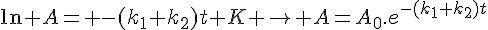--> ln (dA/dt)= - "integrale" (k1+k2)*(dt)