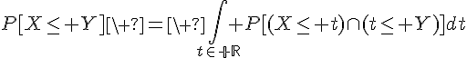 En réalité je me rend compte que je ne connais pas de raisonnement pour calculer ce genre de probabilité quand il intervient 2 variables aléatoires. En règle général, je m'arrange avec la fonction de répartition. Mais ici je ne vois pas quoi utiliser.