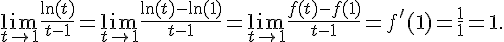 Le fait que . Si l'on note la fonction définie sur , on a Quand tend vers l'infini, tend vers 1 et on peut utiliser la limite précédente pour calculer