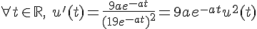 Question: Vérifier que l'équation u(t)= 1/(1+9e(-at)) est solution de (E).